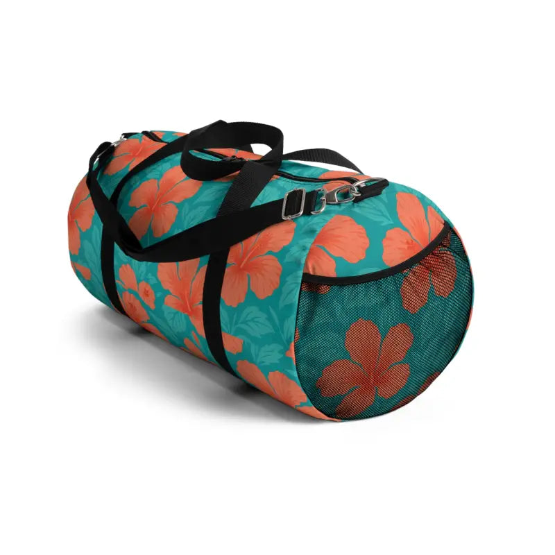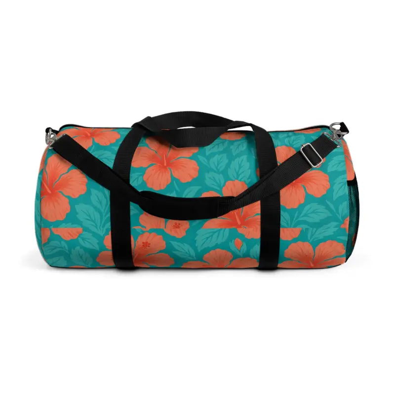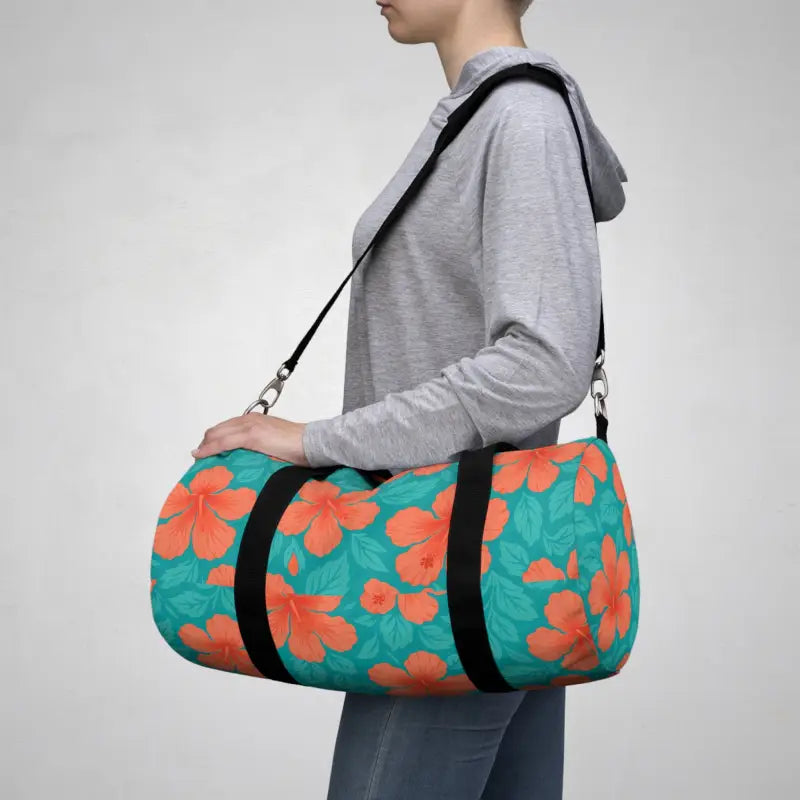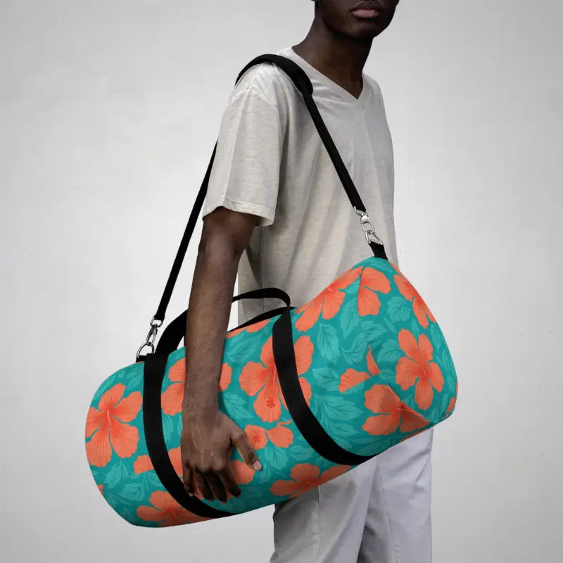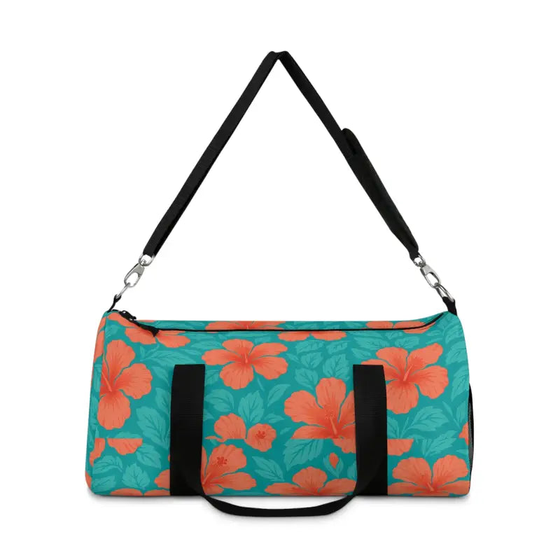- A stunning tropical floral duffel that adds a pop of vibrant color and personality to your look.