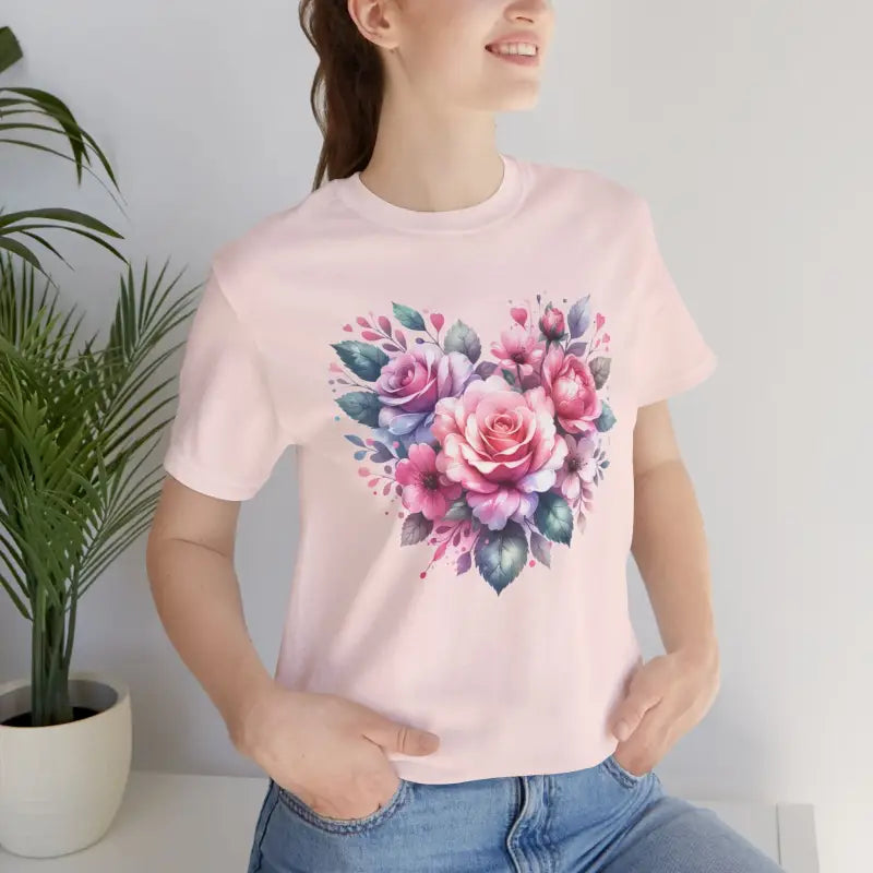 Time to fall in love with a tee that captures the essence of effortless chic combined with unmatched comfort. Elevate your everyday style with the Cozy Hearts and Roses Jersey Short Sleeve Tee and let each wear be a reminder of your great fashion choice. It's more than just a tee; it's about feeling fabulous every time you put it on. Add it to your cart today and experience the blend of coziness and flair for yourself!