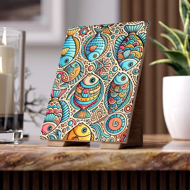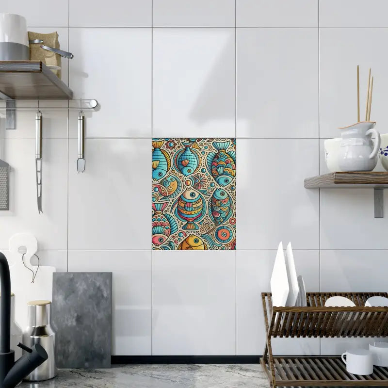 Elevate your home decor with the Vibrant Fishes Ceramic Photo Tile, tailor-made for adding a splash of color and personality to any room. This exquisite tile brings the mesmerizing world of vibrant fishes into your space, creating a tranquil yet eye-catching ambiance. Perfectly crafted from high-quality ceramic, this photo tile offers choices in either a glossy or matte finish, allowing you to match it seamlessly with your existing decor.