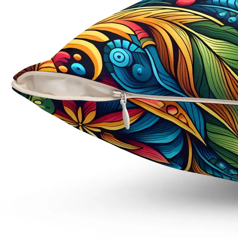 This square pillow not only serves as a statement piece but also offers unmatched comfort and support for cozy lounging. Its engaging design and quality material make it a conversation starter and a focal point in any modern interior. Whether you drape it over your sofa or accent your bedroom, this vibrant floral spun pillow infuses life, energy, and stylish flair into every setting.
