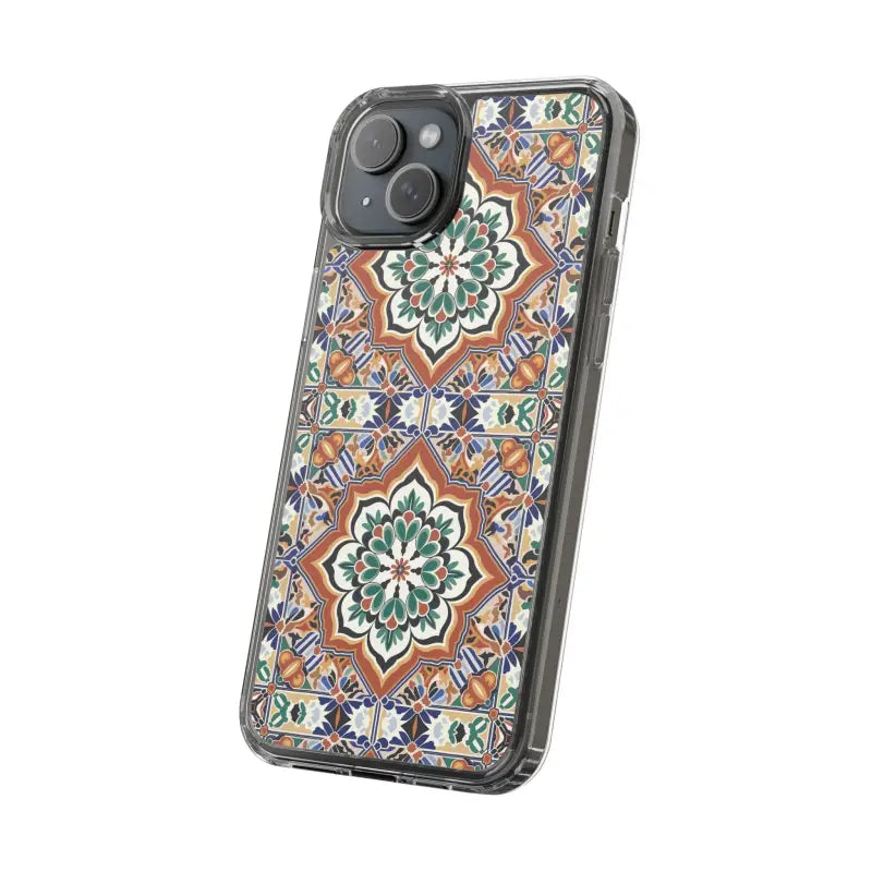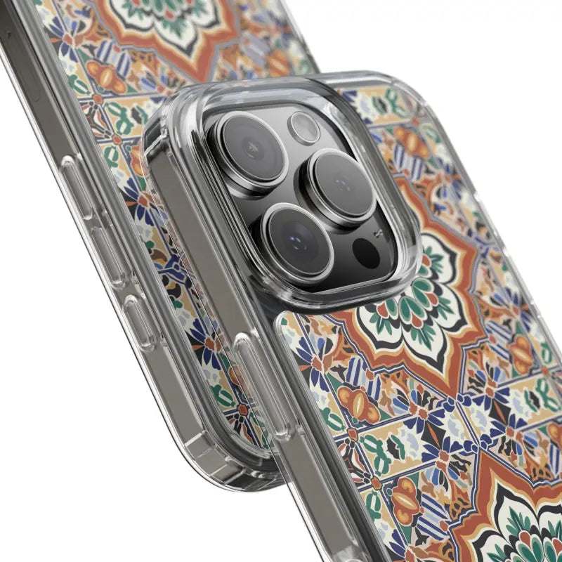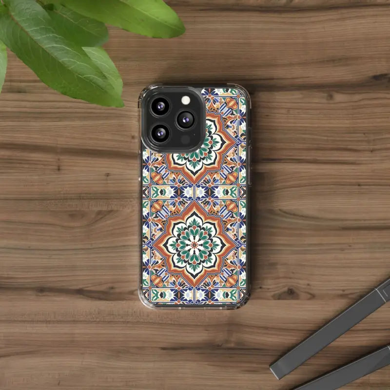 - Striking clear case design lets your phone's beauty shine through while adding a pop with its vibrant geometric pattern