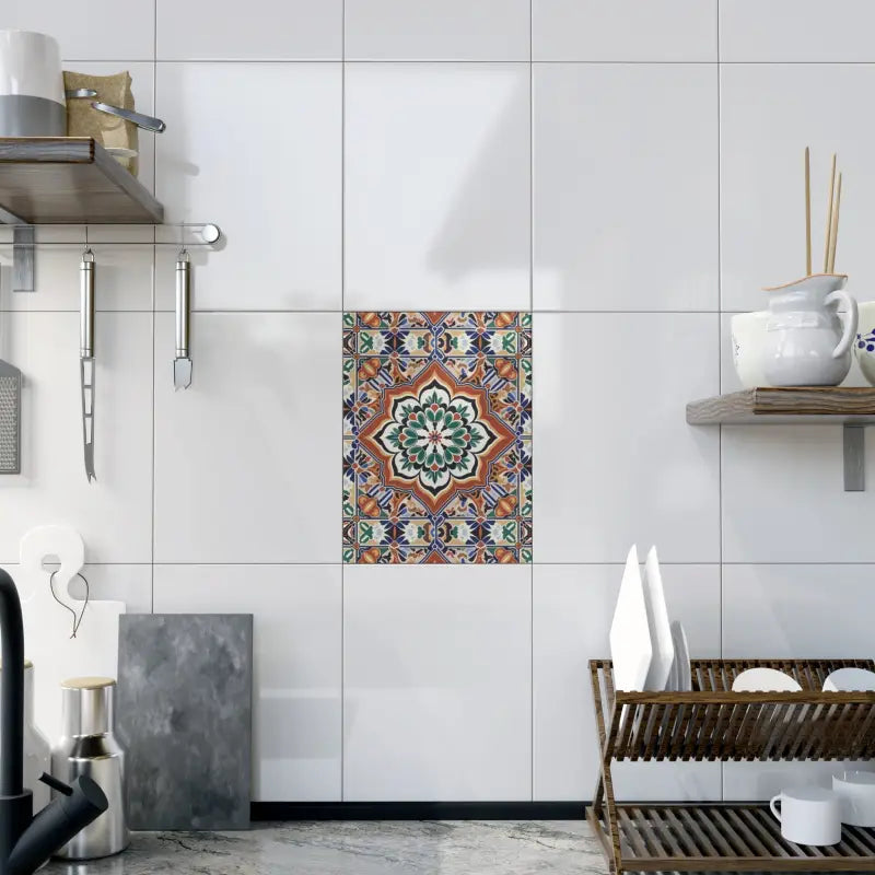 Elevate your décor game as this artistic décor isn't just for bathrooms and kitchens. Transform your dining area, living room, or even your office space with this statement piece. Imagine walkways accented by these vibrant geometrical patterns or fireplaces framed with captivating ceramic photo tiles. Let your creative juices flow as you decorate to express your personal flair.