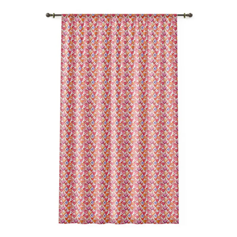Vibrant hearts, Window Curtain. Home decor - the one factor that can make a house truly feel like home. Add character to any type of surroundings with these beautiful curtains. Measuring in at 50" by 84", these curtains can decorate your window with unique artwork. Made 100% with polyester, they're somewhat transparent so as to soften outside light and add elegance to the room.