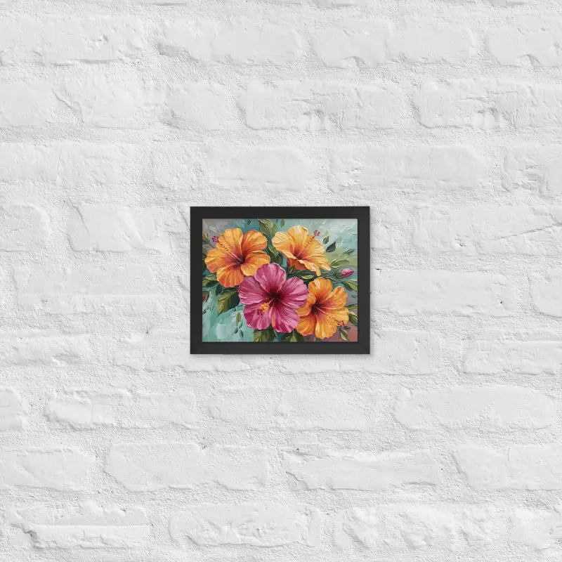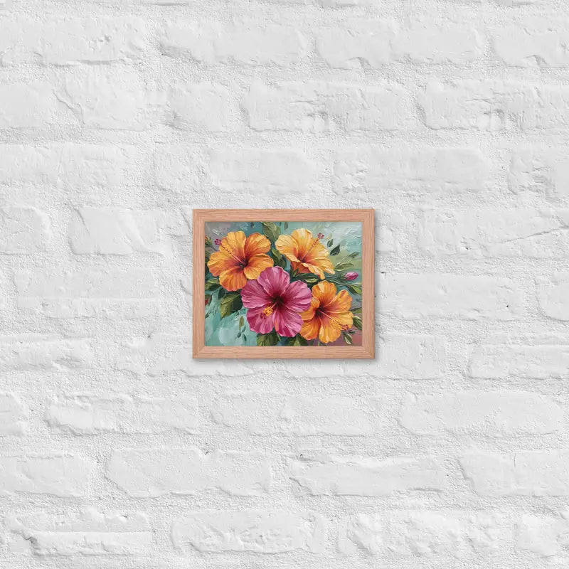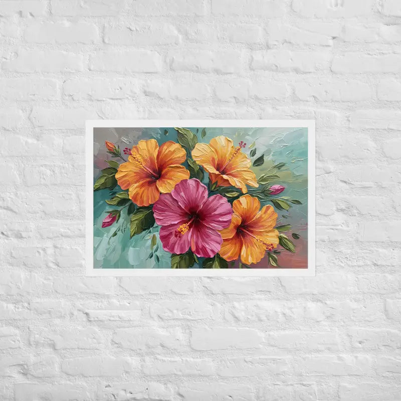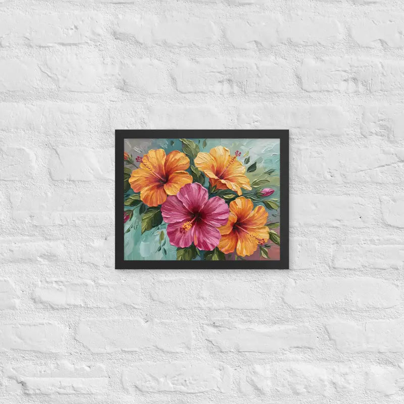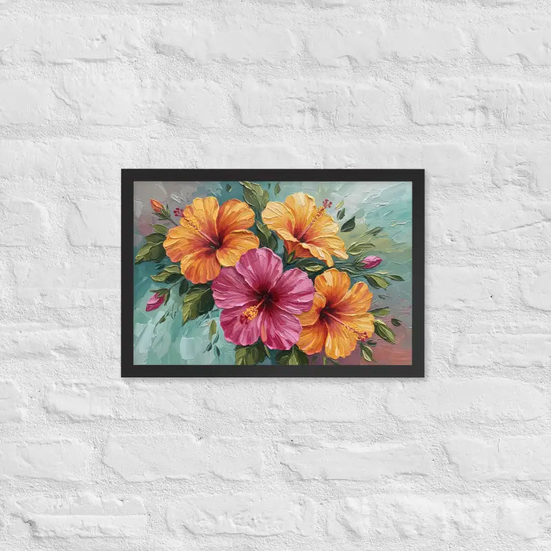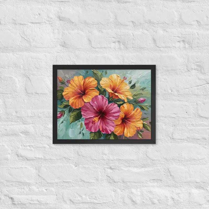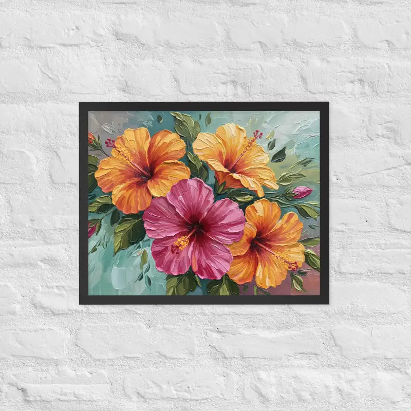 Vibrant Hibiscus Oil Painting Framed Poster Matte Finish