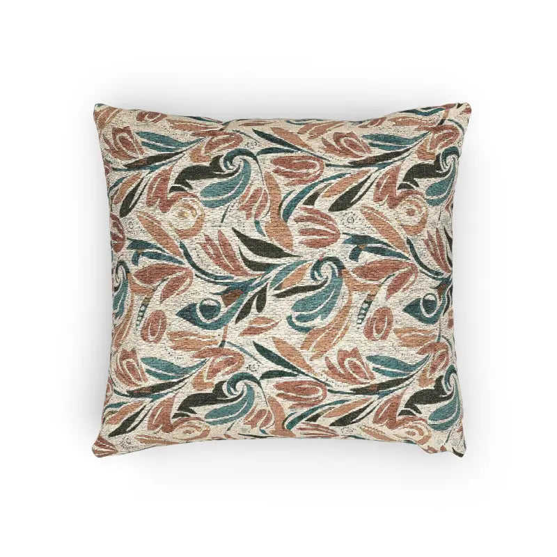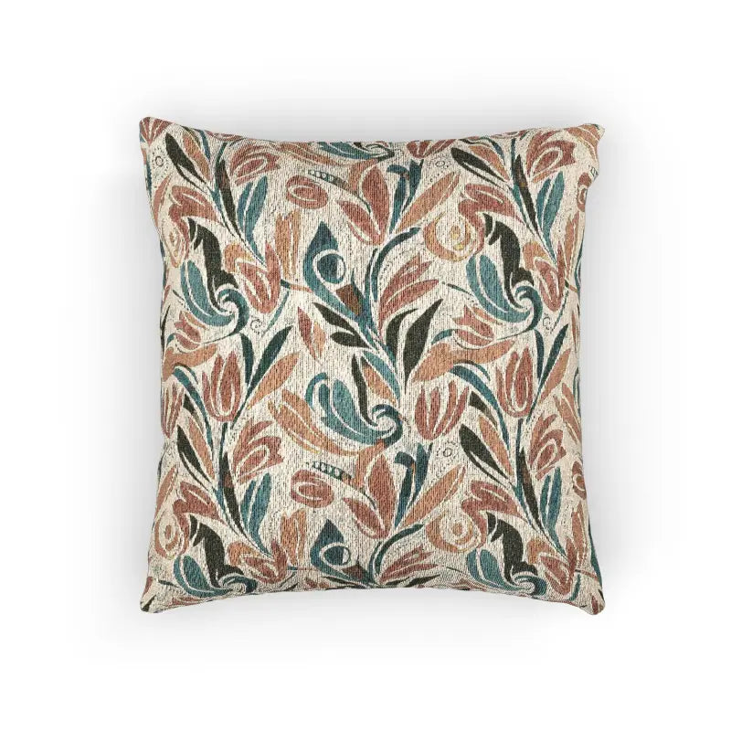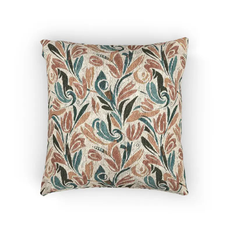 Transform your living space with this stunning vintage botanical woven pillow that brings timeless garden charm straight to your favorite cozy spot! Rich teal and warm rust hues dance across gracefully curved stems and stylized leaves, creating an heirloom treasure that feels like it's been passed down through generations.