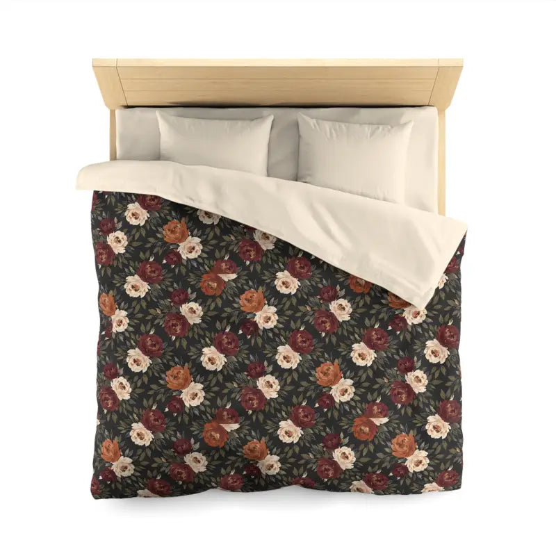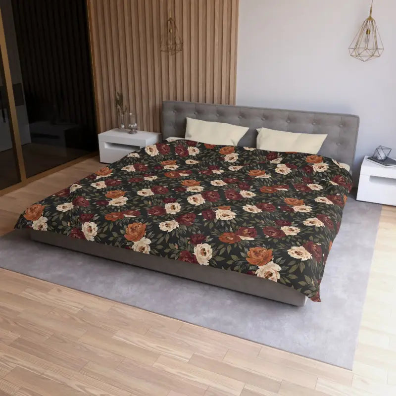Transform your bedroom into a romantic sanctuary with this stunning vintage floral duvet cover that brings timeless elegance to every night. The rustic rose pattern features painterly blooms in warm rust, cream, and olive tones against rich charcoal, creating an instantly cozy atmosphere you'll love coming home to.