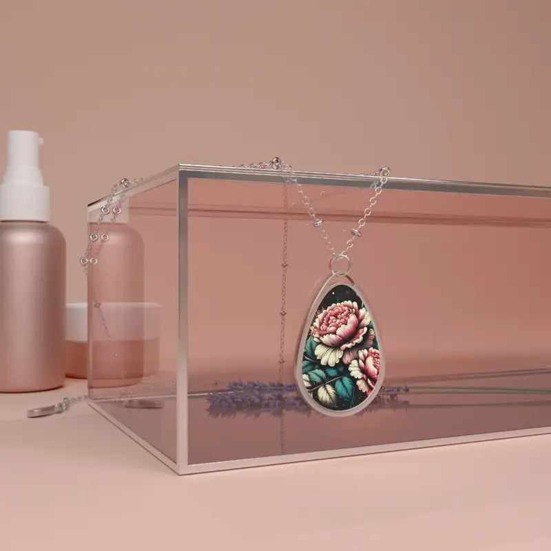The necklace showcases masterful floral motifs, intricately captured within a sleek oval frame. The delicate details emphasize the essence of blossoming gardens, creating a delightful juxtaposition between art and natural beauty. The intricate pattern exudes warmth and positivity, transforming any attire into a canvas of artistic expression.