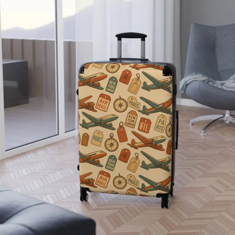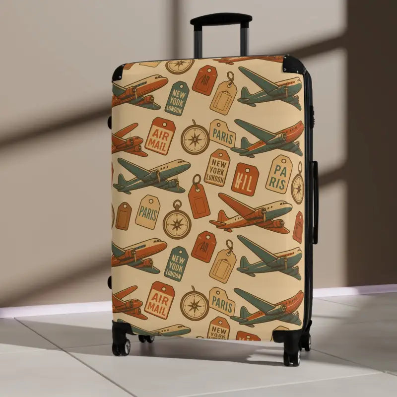 Vintage Travel Suitcase Retro Airplane Design for Travel Enthusiasts DipaliZ