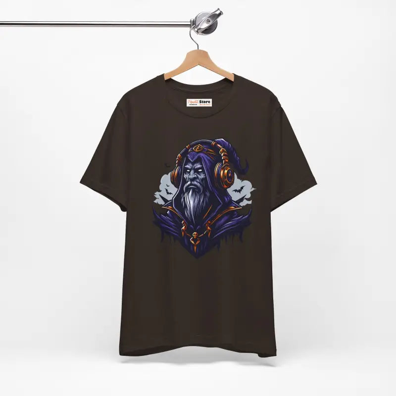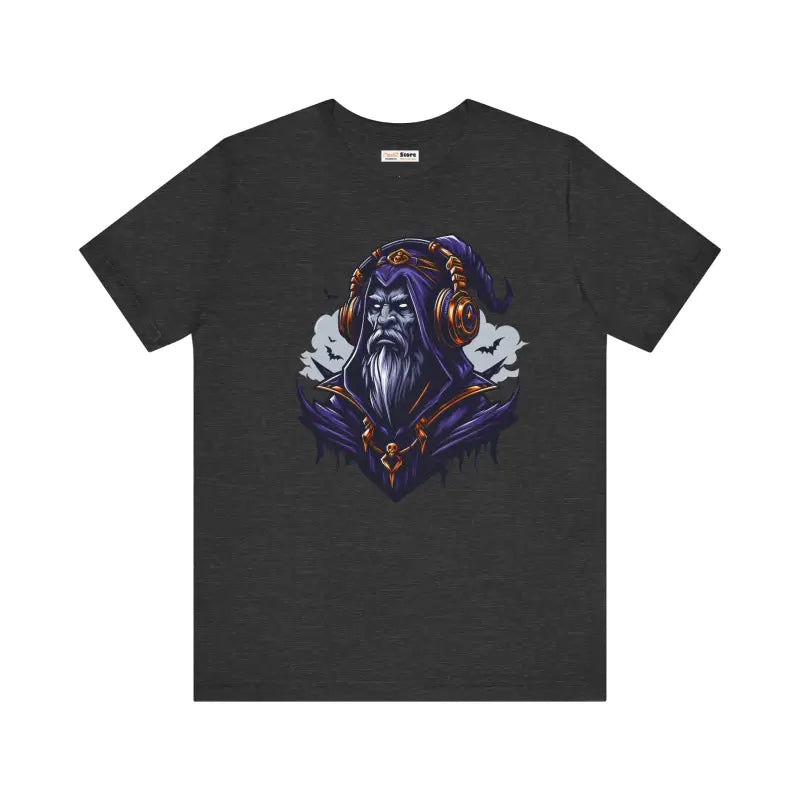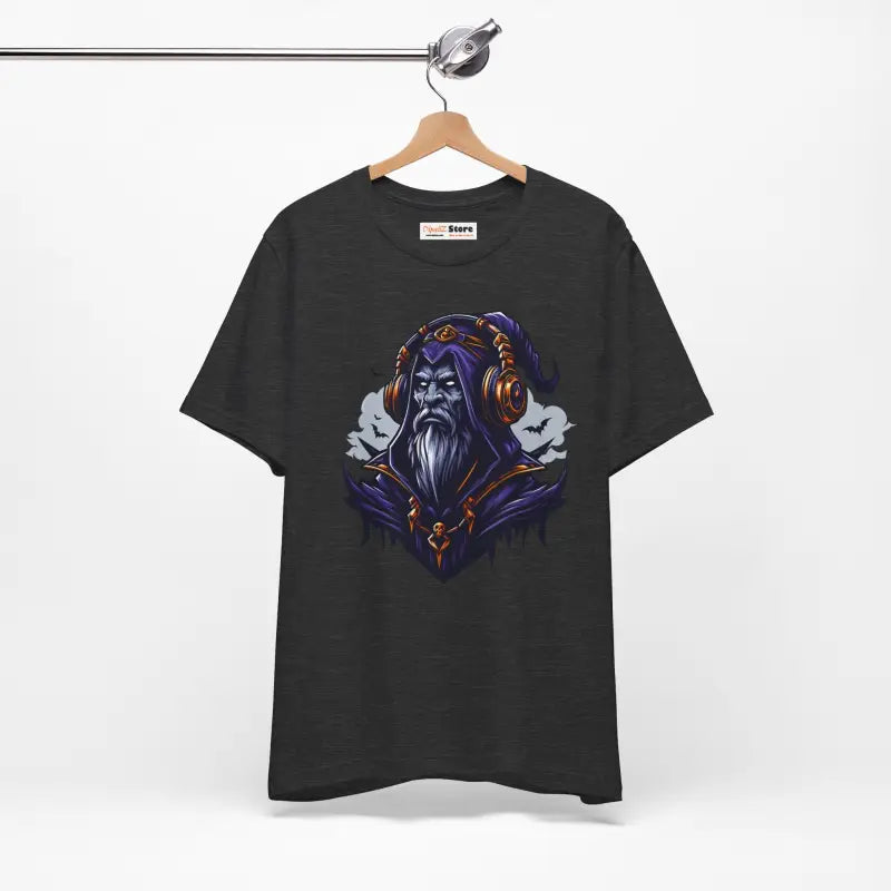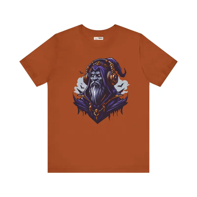 Step into a world of magic and music with our Warlock with Headphones, Halloween Unisex Jersey Short Sleeve Tee! This isn't just any t-shirt; it's a soft, cotton embrace that users fall in love with again and again. The unisex jersey short sleeve tee offers a retail fit that feels like a favorite from the moment you put it on. Enhanced with ribbed knit collars for a touch of shape-retaining sophistication, this tee also features tapered shoulders ensuring it stays in perfect form over time. Strong dual side seams keep its integrity intact, making it the trusty sidekick you'll want every day.