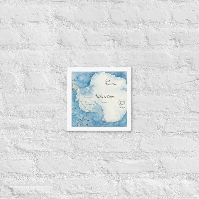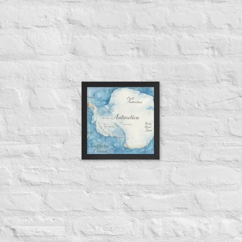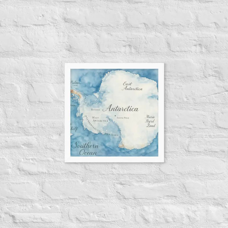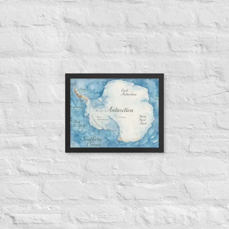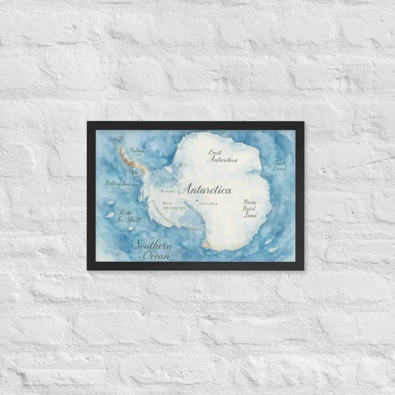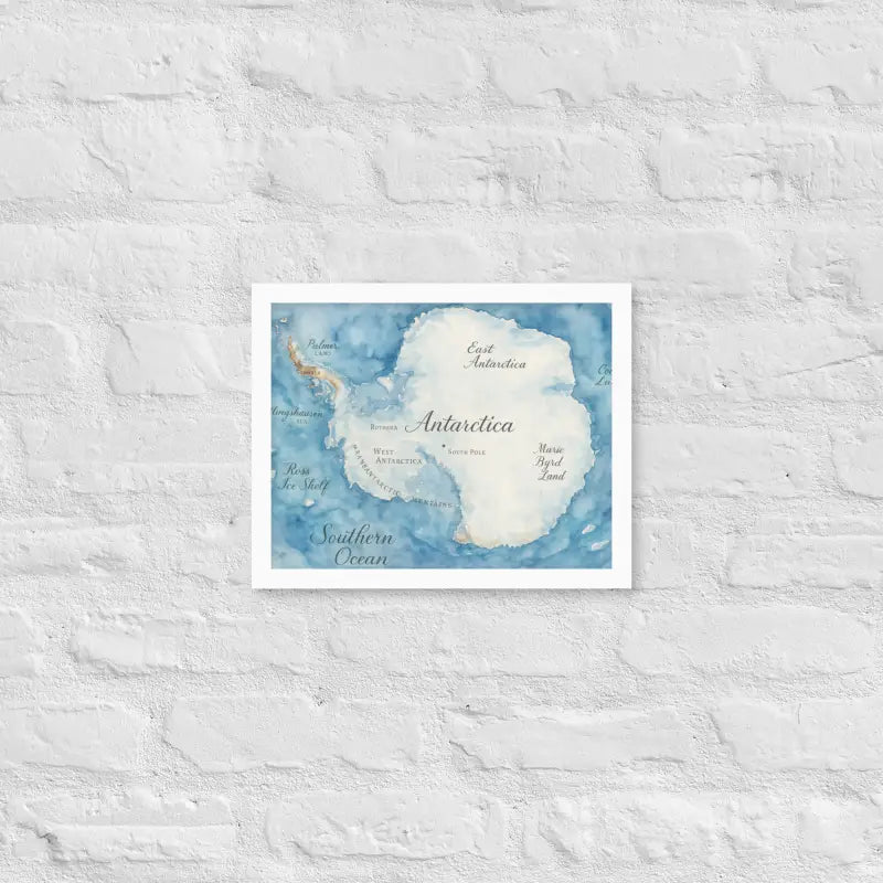 Antarctica Design Framed Poster with Watercolor Map Detail