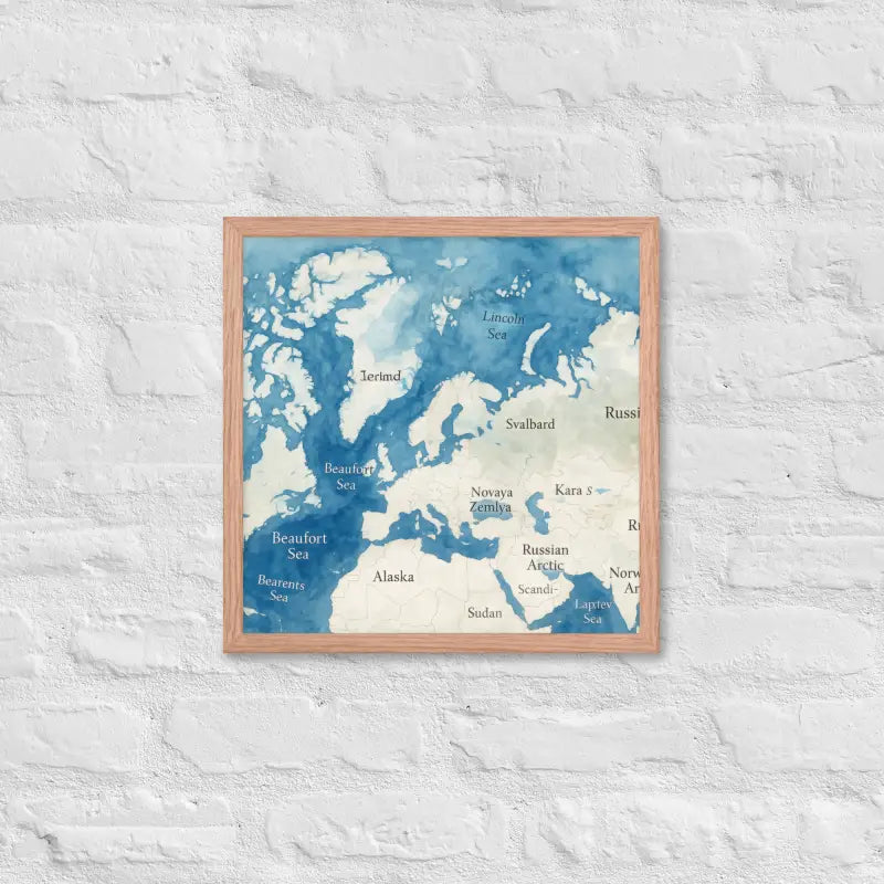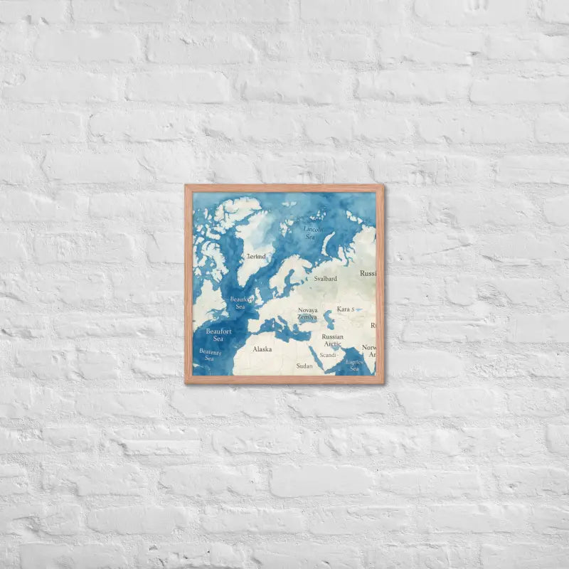 Bring the chill beauty of the far north into your space with this stunning watercolor map that captures the Arctic’s icy blues and soft gradients. The framed poster’s matte finish and elegant black wood frame make it a showstopper in any room.