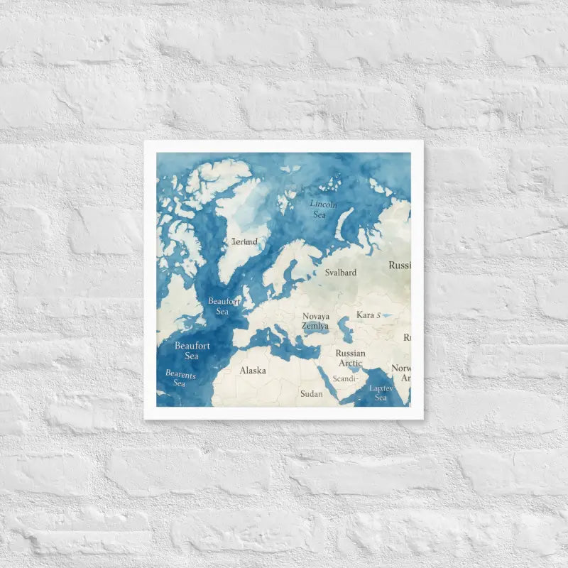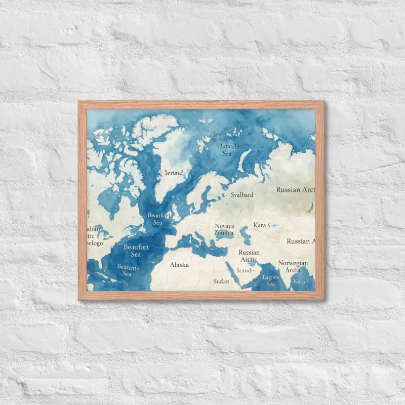Soft blue watercolor tones and crisp Arctic region outlines create serene sophistication.