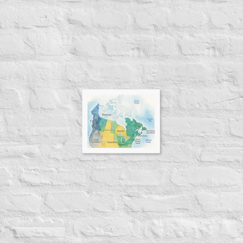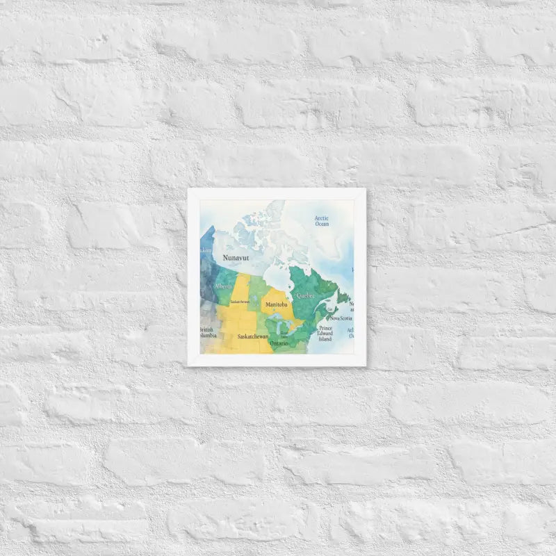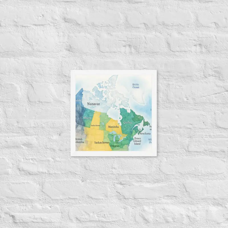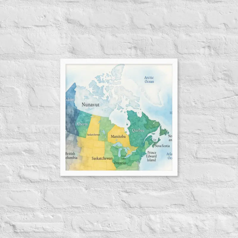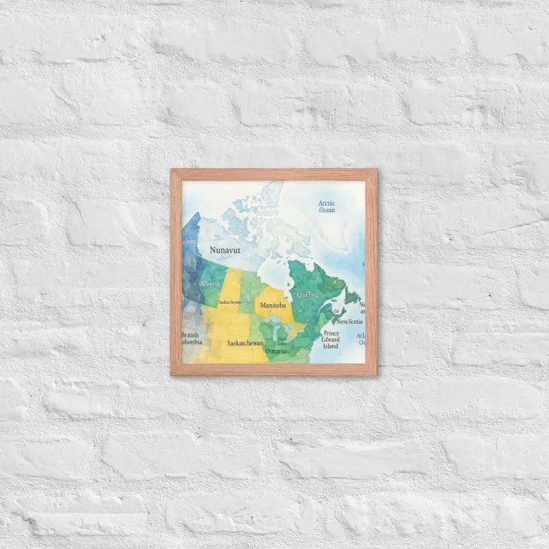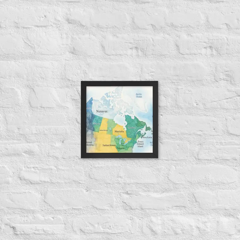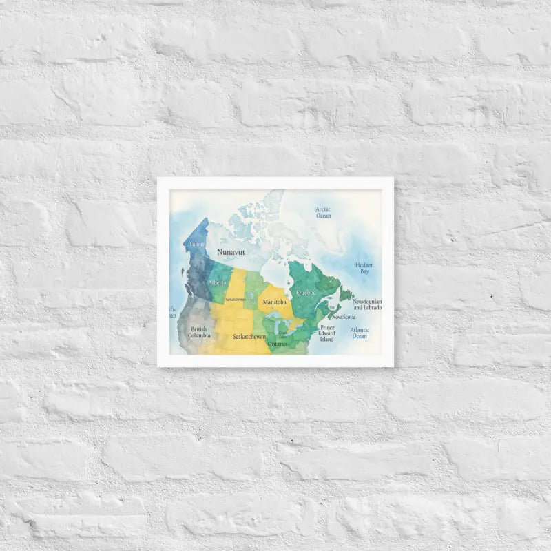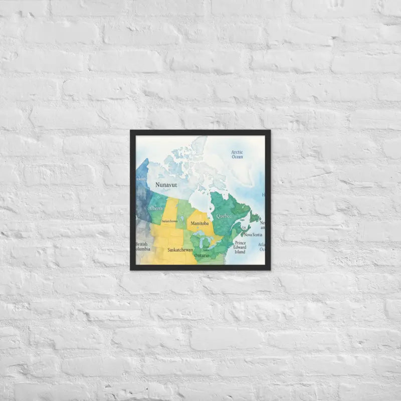 Bring the spirit of Canada to your walls with this vibrant watercolor map framed poster, where soft hues and detailed province names turn geography into art. Feel the calm of watercolor tones meeting the sleek elegance of a matte black frame.