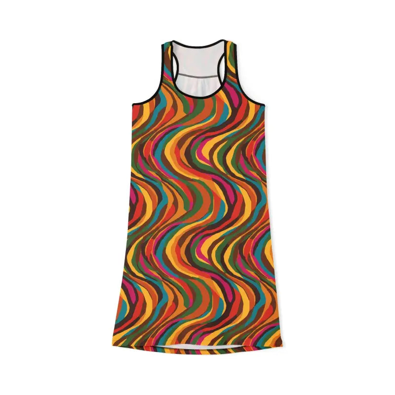 Step into a swirling daydream with this wavy retro swirl racerback dress that brings bold 70s energy to your everyday adventures! The flowing silhouette dances with you through sunlit streets and creative gatherings.