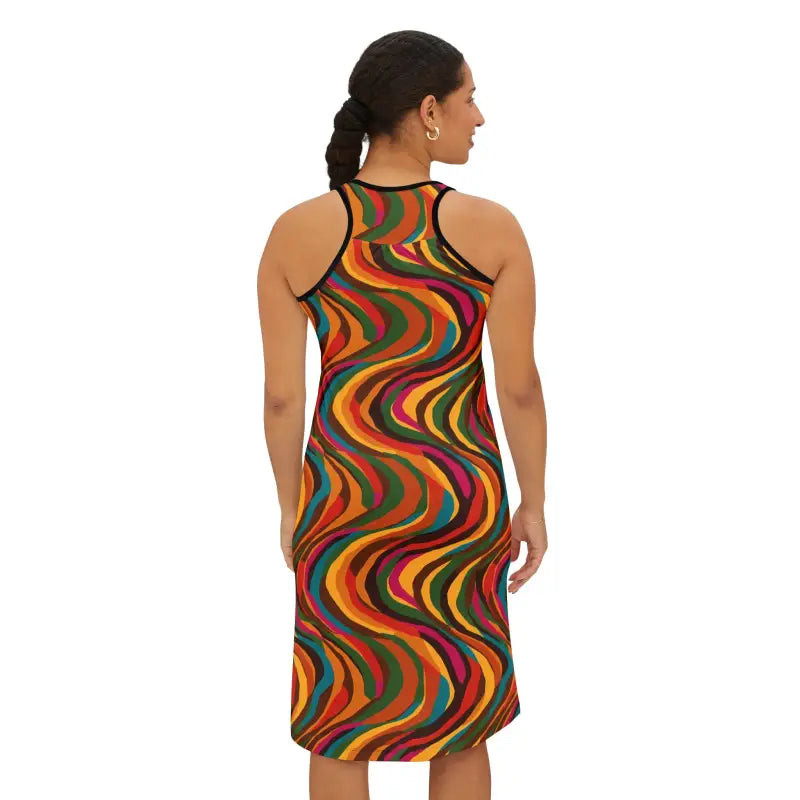 Wavy Retro Swirl Racerback Dress - 70s Print Flow - DipaliZ
