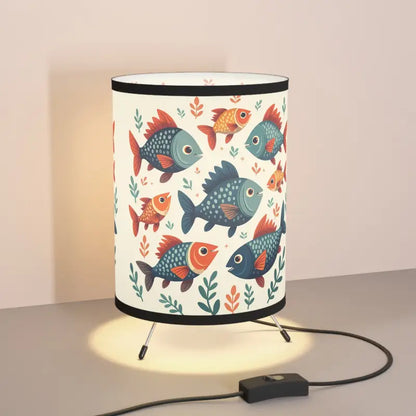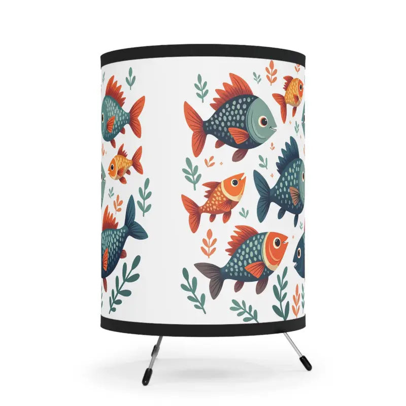 The design of this whimsical fish tripod is all about celebrating fun and artistic expression. Intricate fish illustrations, rendered in crisp high resolution, swim across the printed shade like playful brushstrokes of creativity. The vivid imagery is complemented by a sleek and modern tripod base that ties the entire look together in a seamless fusion of art and function.