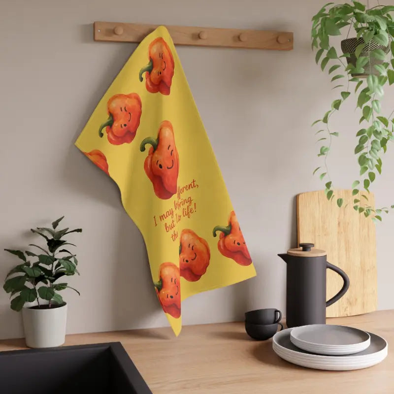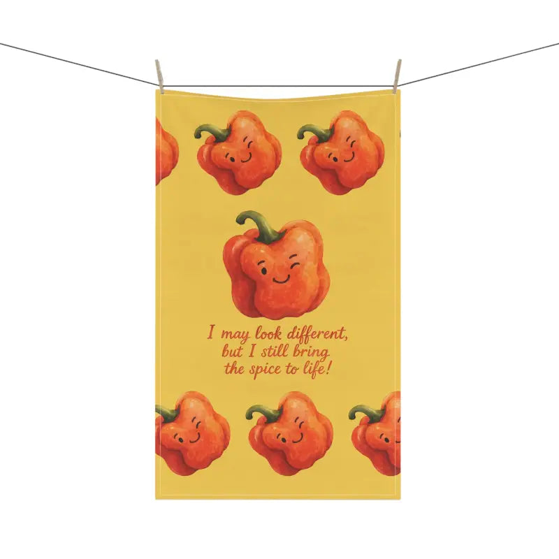 Pepper Pop Tea Towels Brighten your kitchen with these whimsical pepper tea towels that invite you to feel the spice of life as you dry dishes, grab hot pans, or add a dash of color to your countertop. Imagine the playful pepper motifs dancing across your counter while you sip morning coffee.