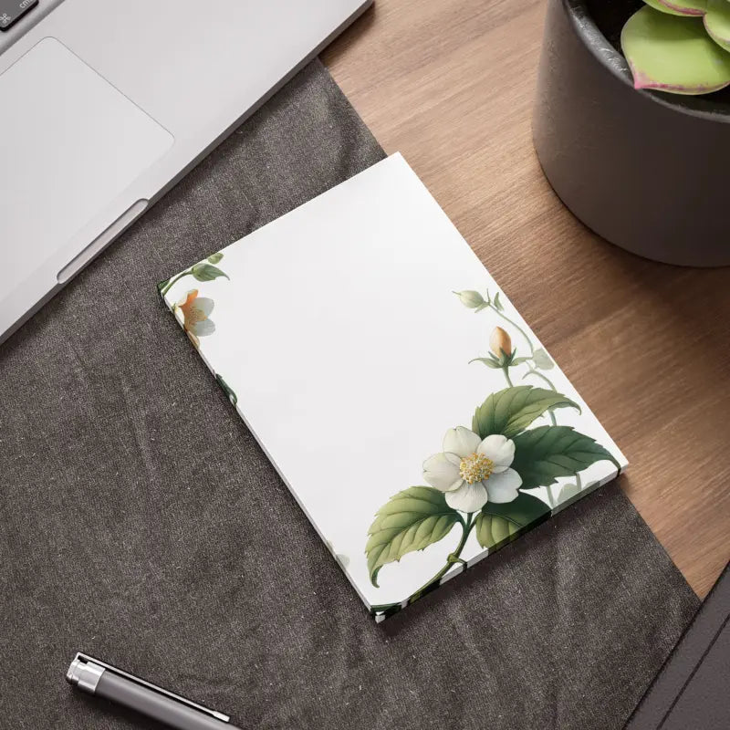 Print: featuring delicate white flowers and leaves that create a blossoming garden vibe on every note for an uplifting workday mood.