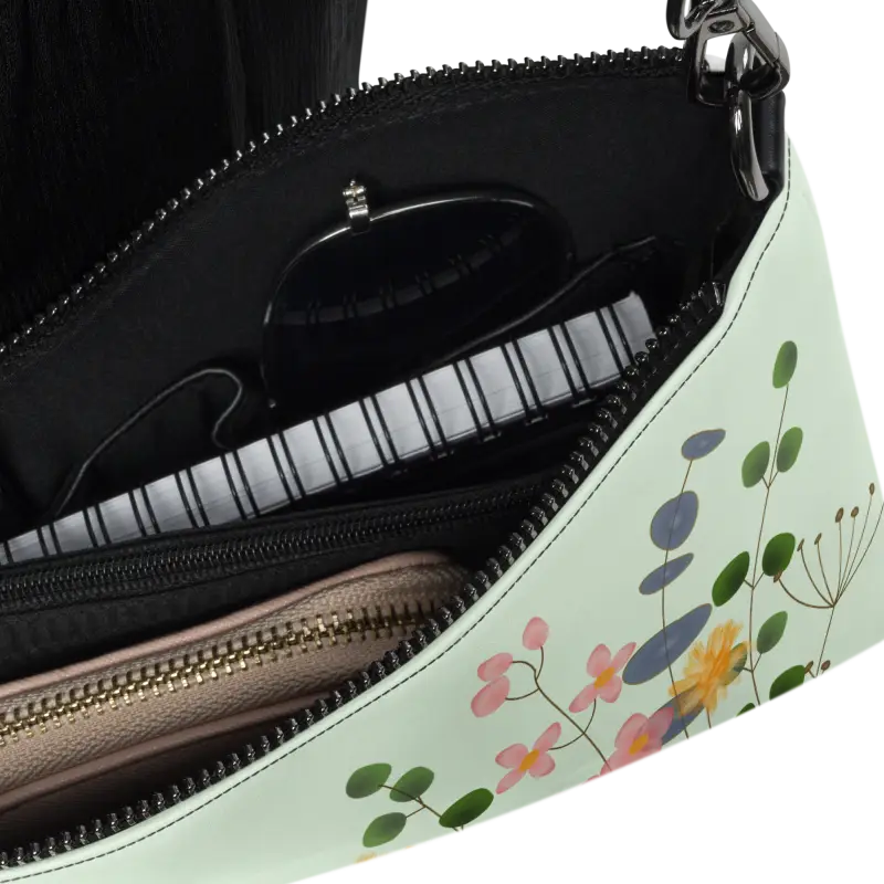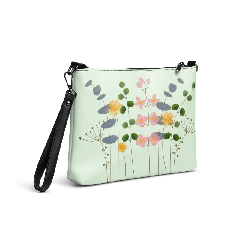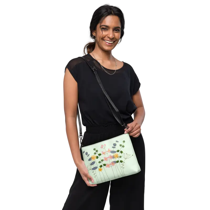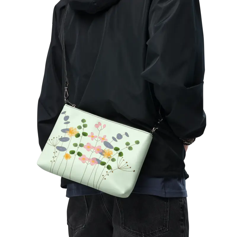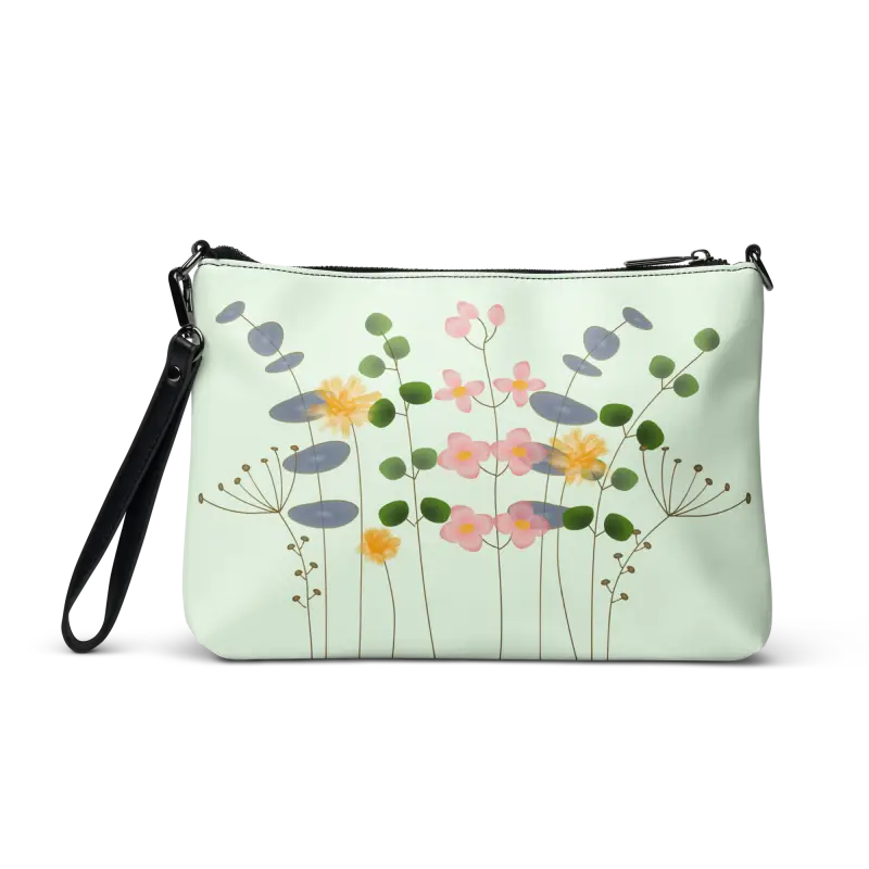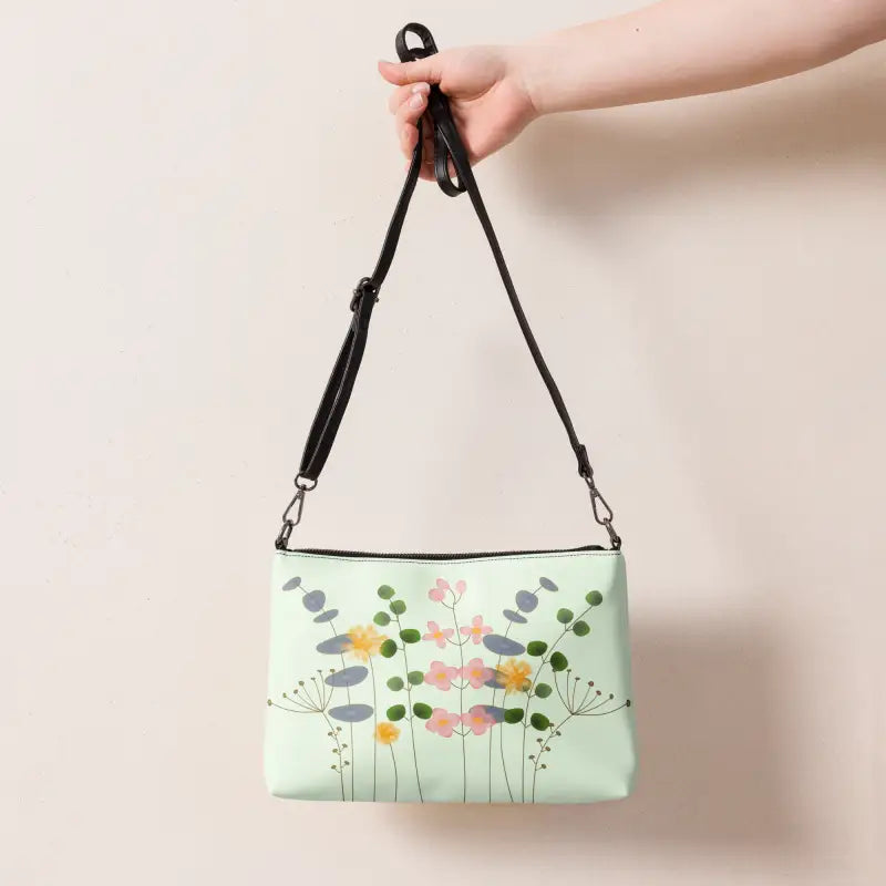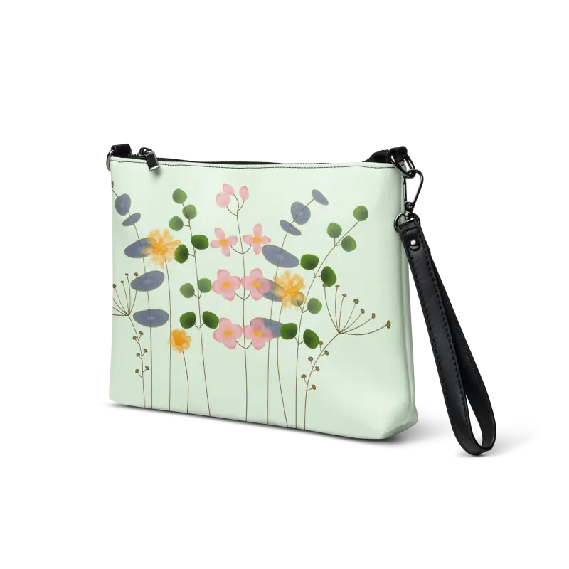 Imagine stepping into a sunlit garden party with this flowers crossbody bag draped over your shoulder, its wild flowers crossbody print bursting with color and charm, making every moment feel like an effortless style statement.