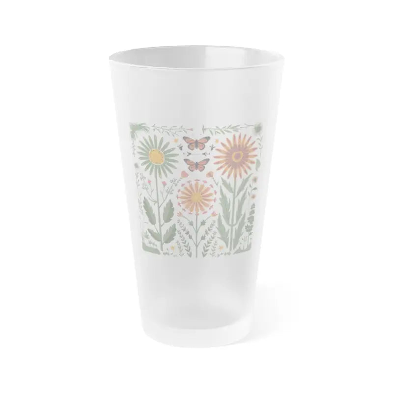 Wave goodbye to boring glassware! These wild flowers frosted pint glasses instantly level up your kitchen or dining area by blending unique home accessories with the energy of a flower-filled meadow. Serve your favorite beverages in style as the dreamy, semi-translucent frosted finish softly diffuses color through the eye-catching high-resolution wild flower print. Your drinks look cooler, your get-togethers feel cozier, and every sip becomes an opportunity to showcase your creative flair.