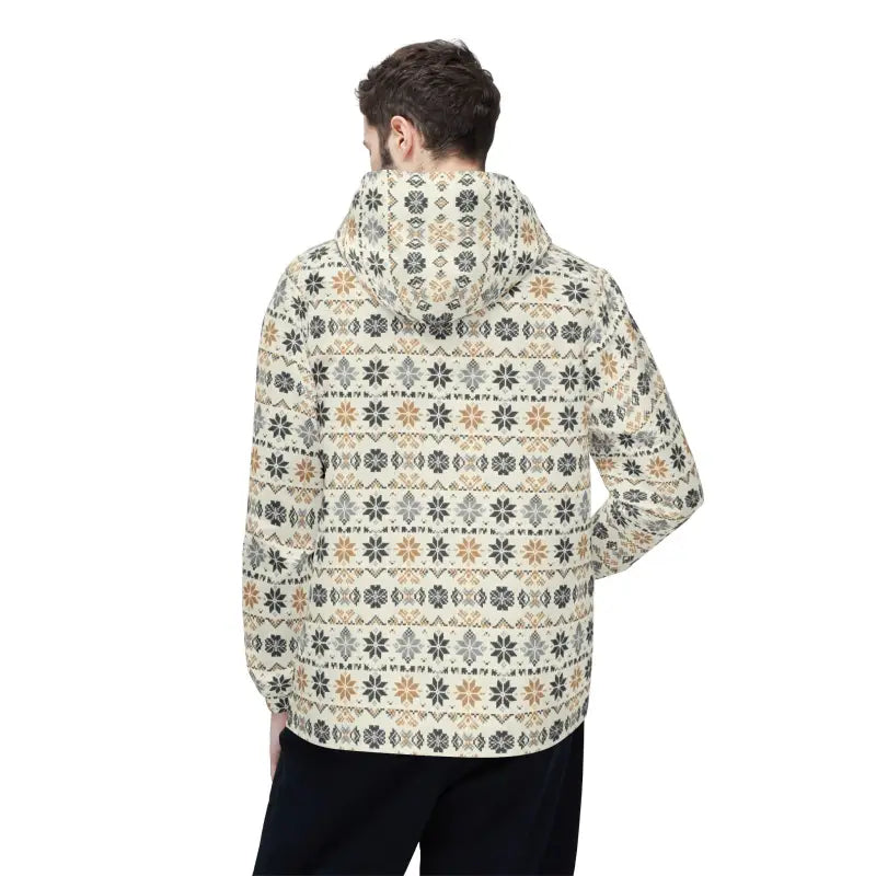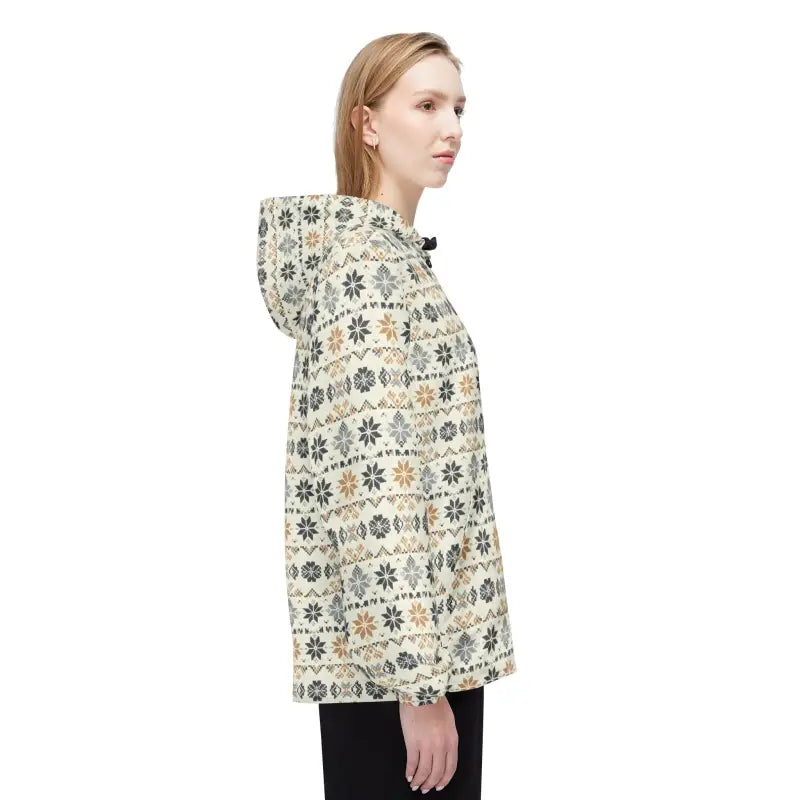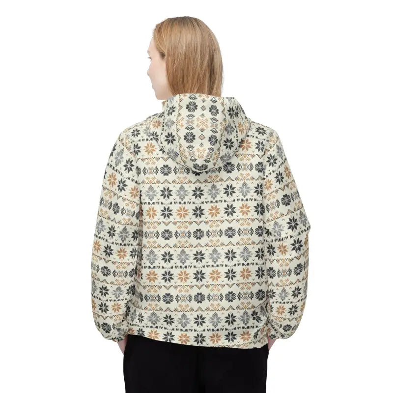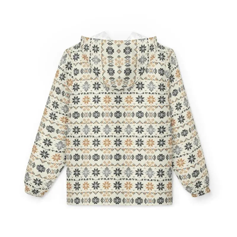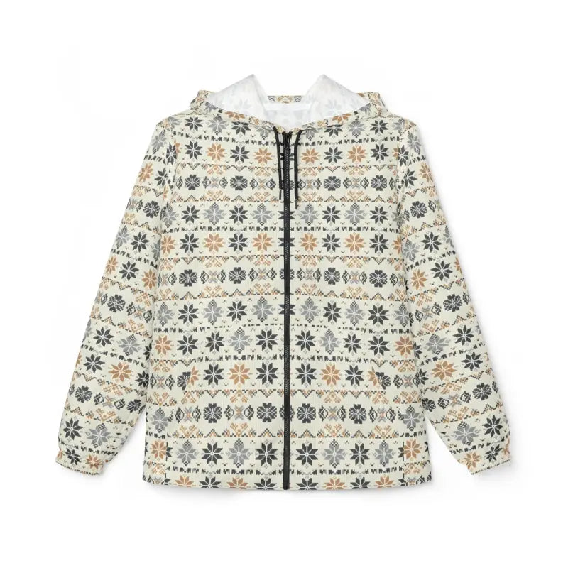 Picture yourself stepping out into a brisk morning where the air bites just enough to make you grateful for that extra layer, and you reach for this windbreaker jacket like it's an old friend. The neutral nordic snowflake pattern wraps around you with the visual warmth of a vintage fair isle sweater, but instead of scratchy wool, you get a smooth, protective shell that actually keeps wind and light rain from crashing your plans. That muted cream background dotted with soft gray and warm tan motifs gives off serious cabin-in-the-woods energy without looking like you raided your grandfather's closet. The all-over print design feels intentional and artful, like you put real thought into your look even when you're just grabbing groceries or meeting friends for weekend brunch. This isn't just another boring jacket you throw on when the weather turns—it's the piece that makes you look forward to those unpredictable spring mornings and chilly autumn evenings when you need something that works as hard as it looks good.