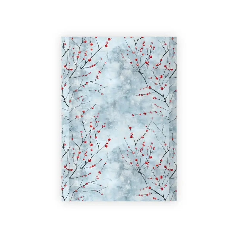 Picture soft blue hues reminiscent of early morning winter skies, adorned with gracefully painted branches that look like they've been freshly dusted with powdery snow. Tiny crimson berries pop against the dreamy watercolor background, creating a design that feels both sophisticated and wonderfully cozy. The painterly quality gives this berries gift wrap an artisanal touch that mass-produced papers simply can't match. The misty texture and organic twig patterns create depth and movement, so your wrapped gifts become conversation pieces before they're even opened.