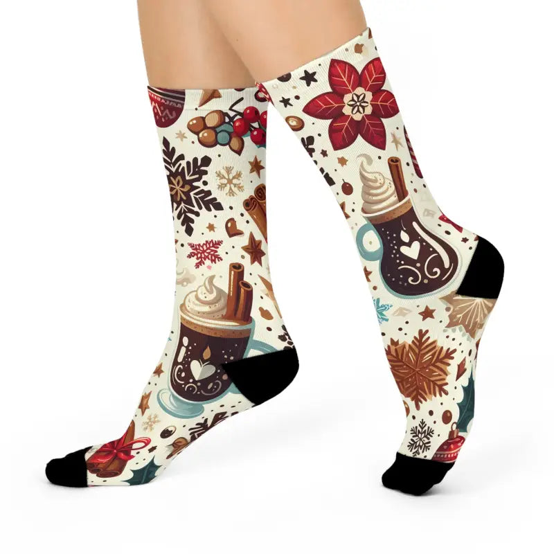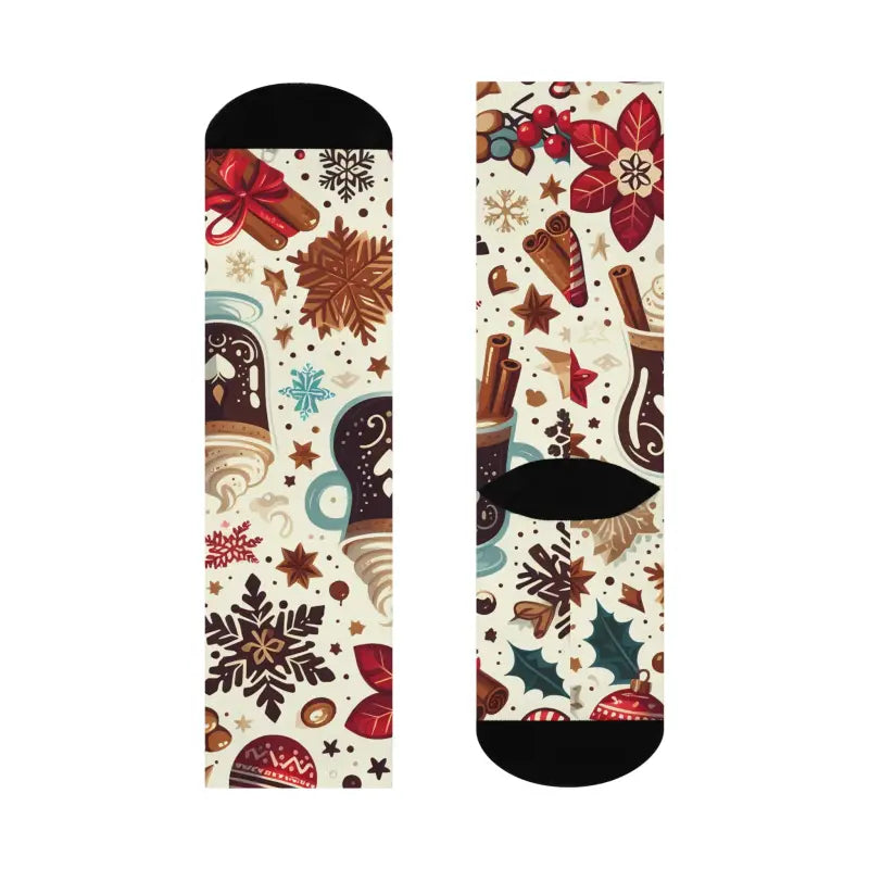 • Eye-catching winter mocha latte design ideal for latte crew socks enthusiasts and women’s fashion lovers.