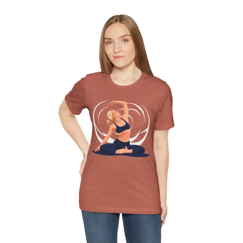 Slip into ultimate ease with our short sleeve tee, tailored to elevate your yoga routine. Whether you’re mastering a challenging pose or stretching out during cool-down, the yoga unisex jersey delivers cloud-like comfort and effortless movement. Its versatile vibe makes it a top pick for both yoga studios and casual days, keeping you at the pinnacle of women’s fashion without ever sacrificing performance.