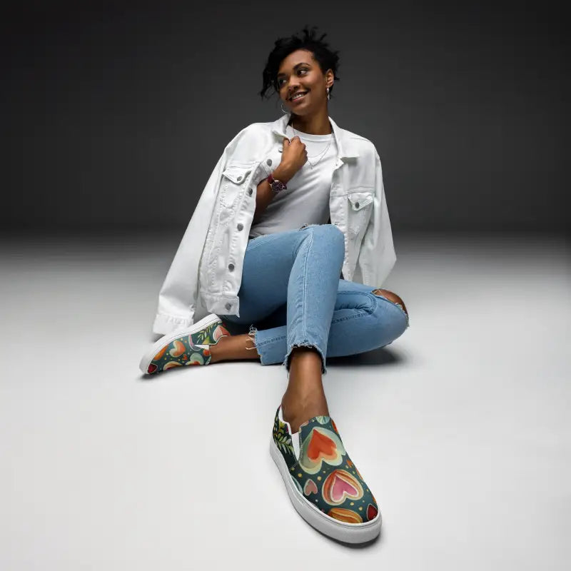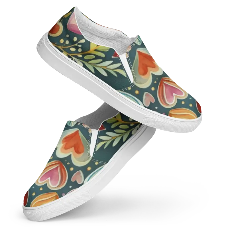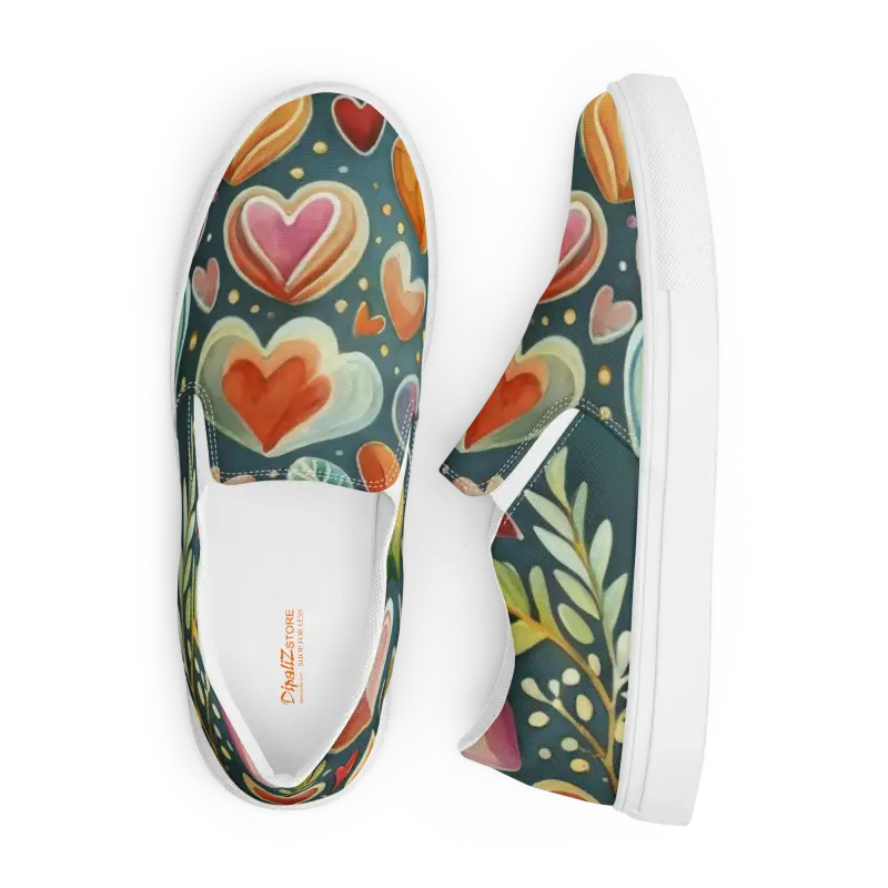 Step out with confidence in these stunning women’s slip on shoes, where playful design meets everyday convenience. Add these canvas shoes with colorful hearts to your collection and transform your look with a fun, fresh twist that speaks volumes about your style.