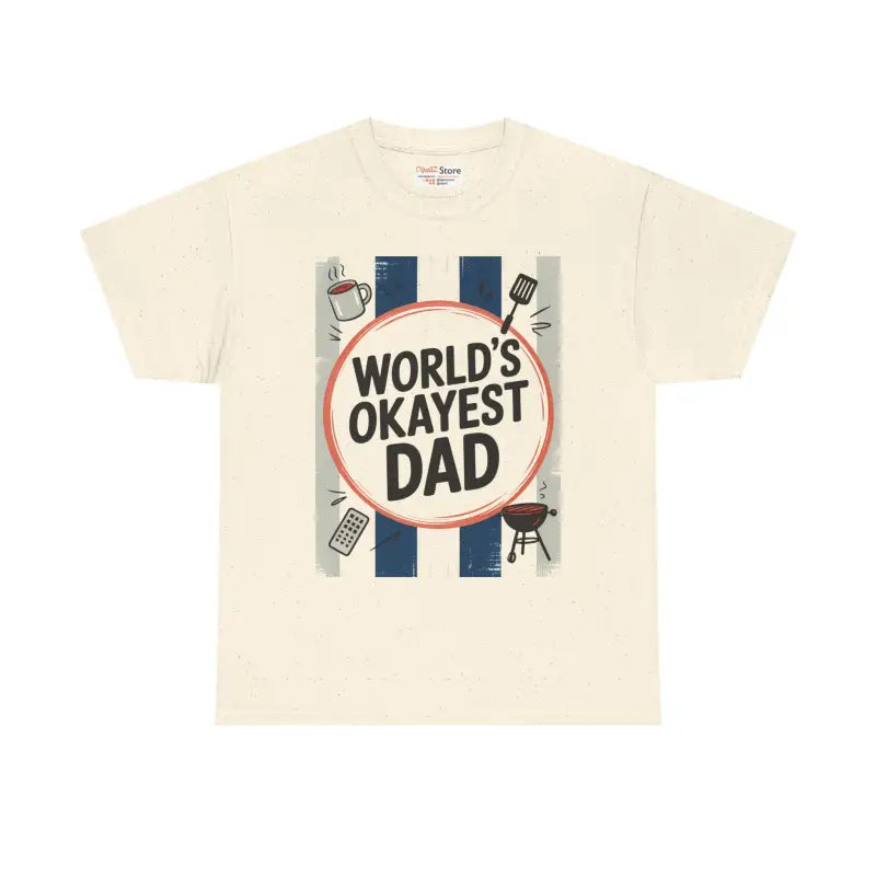 World's Okayest Dad Unisex Heavy Cotton Tee, Father's Day Gift, Casual Wear, Humorous Dad Shirt, Gift for Dad, Family Gatherings. Introduce a burst of warmth and humor into your wardrobe with this Unisex Heavy Cotton Tee. Designed for comfy, everyday wear, this tee radiates a laid-back vibe perfect for casual outings or relaxing at home. Whether it's a Father's Day barbecue or just a fun weekend with friends, it's a thoughtful choice for anyone who appreciates a good laugh and quality style. This tee is made for adults who enjoy expressing their personality through fashion, making it an excellent gift for dads, brothers, or friends on special occasions. Ideal for birthdays, holiday celebrations, or just because, it effortlessly elevates any casual ensemble.