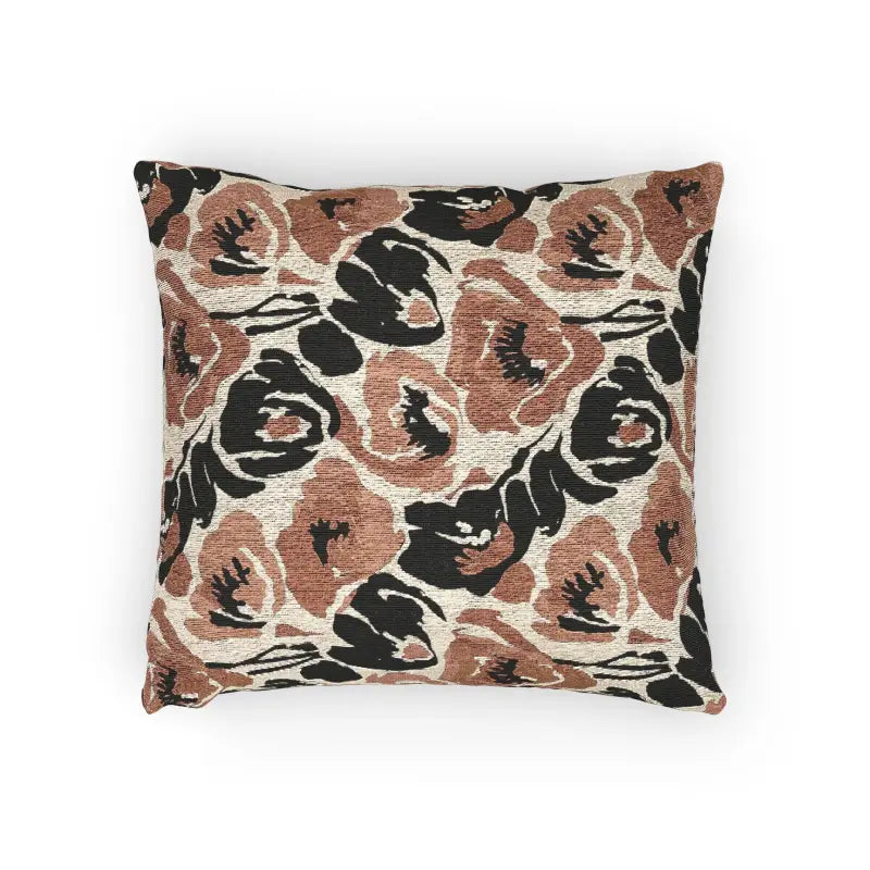 Picture softly pixelated rose blooms in rich terracotta, cream, and deep charcoal tones that look like hand-stitched embroidery. This roses throw pillow features a textured weave that adds incredible depth and a gently vintage feel to your decor.