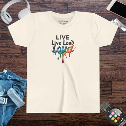 It’s time to fuel your bold kid’s confidence and brighten their wardrobe with the ultimate youth short sleeve tee. Add it to your cart now for maximum fun, maximum style, and maximum smiles—because every day is better when you Live Loud!